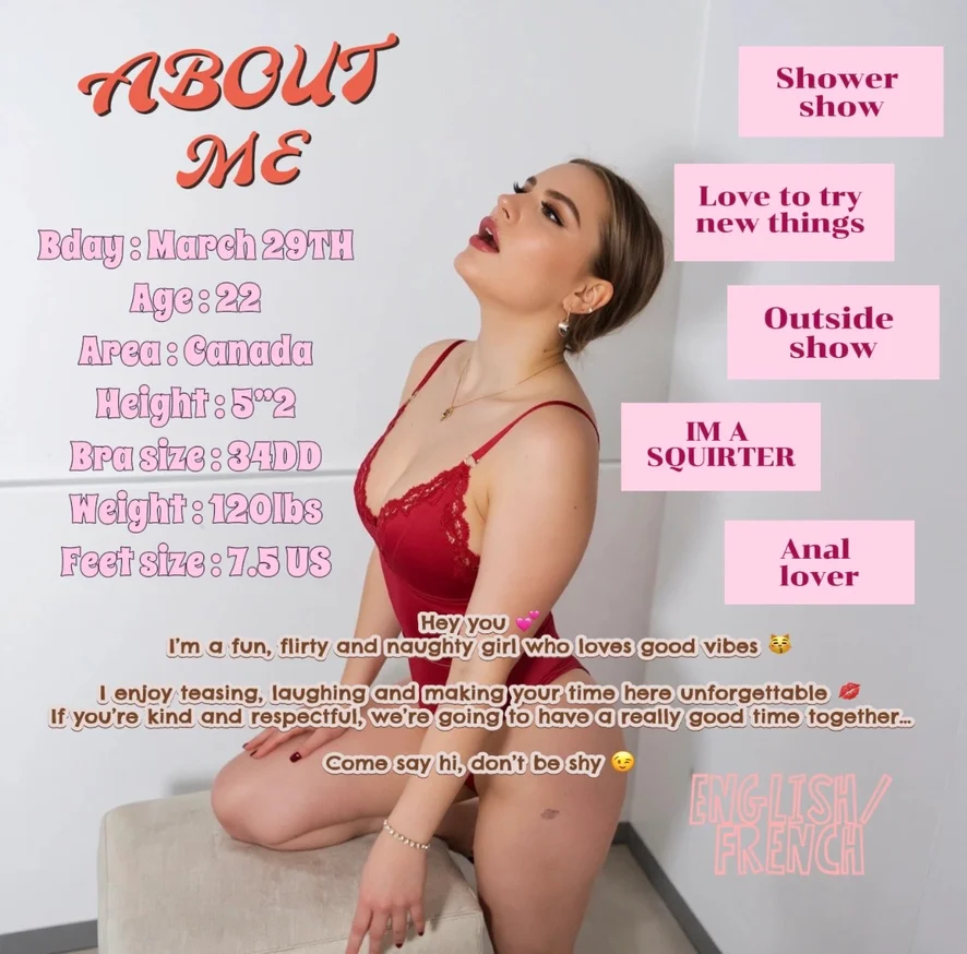 Orál, Hodnotenie vtáka, Dildo alebo vibrátor, Sprosté reči, Odzadu, Výstrek na tvár, Prstovanie, Masturbácia, Hračky na bradavky, Orgazmus, Striptíz, Twerk, Joga, Podpätky, Ahegao, Bozkávanie, Cosplay, Korzet, Varenie, Erotický tanec, Sedenie na tvári, Plieskanie po zadku, Dusenie, Masáž, Hore bez, Sexuálne hračky, Sprcha, Foot fetiš, Poloha 69, CEI, Dvojitá penetrácia, Zo zadku do úst, Exhibicionizmus, Fisting, Footjob, Hlboký orál, Hardcore, Roleplay, Pokyny na honenie, SPH, Análne hračky, Medzi kozy, Striekanie, Ponižovanie